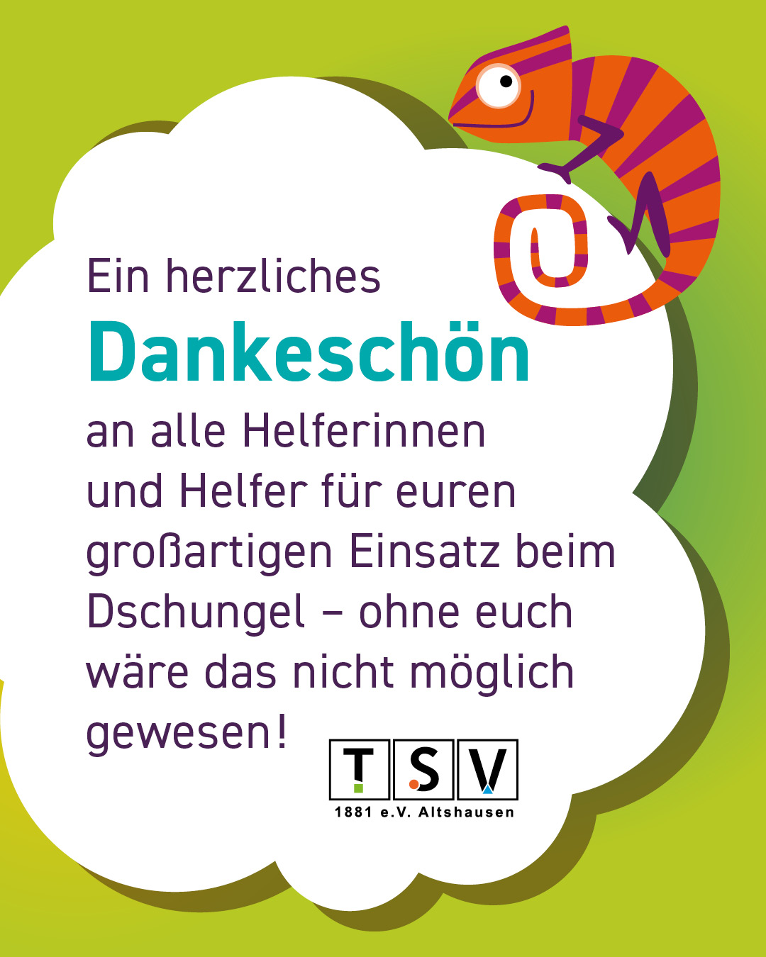 Vielen Dank vorab an alle, die uns bei der Durchführung des “Dschungels” helfen.